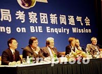 ![]() 國際展覽局考察團在上海結束了四天的考察,在對上海申博的各項準備工作進行仔細考察后,今日在滬舉行新聞通氣會,對上海的申博準備工作給予高度評價。圖為新聞通氣會現場。中新社圖 湯彥俊 攝
