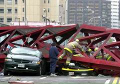 圖文:臺北"的哥"地震時為救乘客 右臀肉被削 2002年04月02日 09:35 臺北“國際金融中心”震災現場 中新網香港4月2日消息:臺北訊,前天地震發生之際,為了讓當時被嚇呆的出租車上三名乘客順利下車,司機盧秋隆耽擱了自己逃命的時間,沒想到右臀竟被從天掉落的鐵片硬生生地削掉一塊肉。 當天,盧秋隆從臺北的凱悅飯店搭載三名乘客。地震發生時,車子剛好停在臺北“國際金融中心”工地附近的十字路口等紅燈。回想起當時的情景,盧秋隆昨天仍心有余悸,稱那時“好象是原子彈爆炸一樣”,鋼筋、鐵條等重物從天而降,滿天都是灰塵。 “只差兩秒鐘,就可以安全脫困”,盧秋隆說,當時他往外逃去,沒想到一輛逆向行駛的小客車阻斷了去路,就在那一瞬間,屁股一陣疼痛,原來一塊從天掉落的鐵片削掉了他右臀上的一塊肉。 據島內媒體報道,事后看到被壓得粉碎的車子,盧秋隆雖然余悸猶存,但他說,自己比中了樂透彩券還要高興。