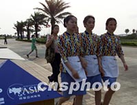 圖:金海岸酒店女服務員成博鰲論壇亮點 2002年04月10日 19:46 ![]() 海南博鰲亞洲論壇開幕在即,論壇主會場金海岸酒店的女服務員身著特色服飾,成為博鰲的一道風景線。中新社記者 滿會喬 攝