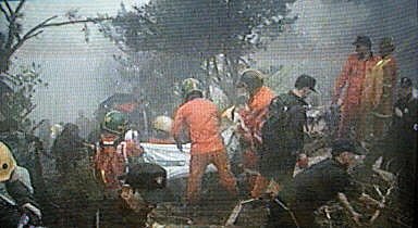 圖:國航客機在韓國墜毀 韓國方面搶救生還者 2002年04月15日 16:03 ![]() 中國國際航空公司一架波音七六七型飛機十五日從北京起飛于韓國墜毀。圖為韓國救援人員在墜機現場進行搶救工作。法新圖