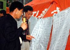 韓國人在事發地附近閱讀失事飛機的乘客名單。法新社圖