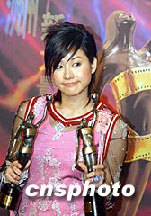 ![]() 小女子林嘉欣因?yàn)樵凇赌腥怂氖分械某錾硌荩?4月21日奪得第21屆香港電影金像獎(jiǎng)“最佳新人”和“最佳女配角”桂冠,成為當(dāng)日最幸福的女孩。中新社記者 任晨鳴 攝