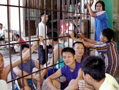 圖文:中國漁民仍被菲方扣押 如判罪可能入獄20年 2002年04月30日 09:11 法新圖 中新網北京4月30日消息:日前據菲律賓官員透露,2月初因在菲律賓巴拉灣“非法捕魚”而被捕的116名中國漁民,因審訊工作進展緩慢,目前還一直被關押在擁擠的監獄里。 據關押中國漁民的巴拉望省首府普林塞薩港的省級監獄的獄警稱,監獄的設施有限,很擁擠。監獄的16間牢房原本只適合容納200名囚犯,但現在卻容納了463人。 該獄警稱,這些漁民中至少30人自2月被捕以來就得了水痘,但經過治療后都已痊愈。在被捕者中,有8人的年齡介于15至18歲之間。 據菲律賓官員表示,巴拉灣是聯合國教科文組織宣布的世界遺產。 據《聯合早報》報道,來自中國海南省的116名漁民將面對一系列控狀,包括非法入境、偷捕魚和擁有瀕臨絕種的巨型蛤。據菲律賓官員表示,一旦罪名成立,可能被判坐牢20年。 相關報道:菲律賓移民局決意要起訴116名被捕中國漁民 相關報道:中國駐菲律賓大使館要求釋放逾百名中國漁民 相關報道:菲律賓考慮釋放被捕中國漁民中的12名少年 相關報道:菲律賓移民局決意要起訴116名被捕中國漁民