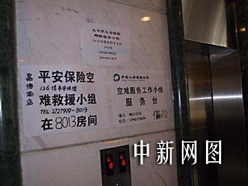 圖:各保險公司在難遇家屬接待酒店設立工作組 2002年05月09日 17:07 ![]() ![]() ![]() 各保險公司在大連嘉信酒店等“五七”空難遇難者家屬接待酒店設立工作組。中新社記者 齊彬 攝
