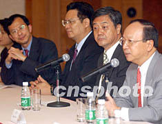 章孝嚴(yán)率團(tuán)經(jīng)香港前往祖國大陸為兩岸三通探路 2002年06月23日 08:46 ![]() 由章孝嚴(yán)為團(tuán)長的臺(tái)灣"中國臺(tái)商發(fā)展促進(jìn)協(xié)會(huì)"參訪團(tuán),6月22日下午在香港與曾鈺成等多位香港立法會(huì)議員、學(xué)者專家、中央政府駐香港聯(lián)絡(luò)辦臺(tái)灣事務(wù)部部長邢魁山等座談"一國兩制"等問題。任晨鳴 攝