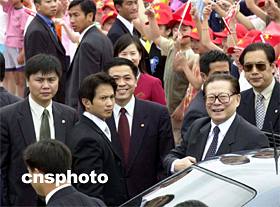 組圖:江澤民乘專機(jī)離開香港 2002年07月01日 15:18 ![]() ![]() 國家主席江澤民7月1日結(jié)束在香港出席特區(qū)政府成立五周年慶祝活動(dòng)后,乘專機(jī)離開香港。中新社傳真 洪少葵 攝