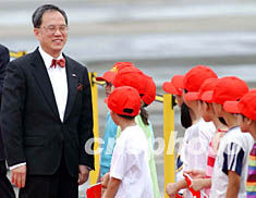 圖:政務司長曾蔭權(quán)與前來歡送的小朋友寒暄 2002年07月01日 18:15 ![]() 香港政務司司長曾蔭權(quán),7月1日在香港國際機場為國家主席江澤民送行前,與前來歡送的小朋友寒暄。中新社圖 洪少葵 攝