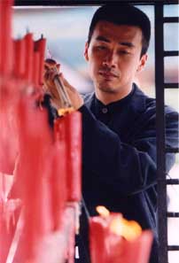 拍攝花絮:柳云龍靈山大佛前祈禱(多圖) 2002年07月11日 15:50 ![]() 現(xiàn)場(chǎng)圖片 ![]() 無錫有座靈山,靈山大佛為天下第一高立佛,高達(dá)88米。相傳佛陀涅槃后千年,玄奘大弟子窺基帶著佛祖遺物——菩提心燈至靈山傳法,遂神燈成為靈山鎮(zhèn)山之寶。因此緣,再四百年,佛祖百丈金身終現(xiàn)靈山山巔。我們的景就選在這個(gè)空靈而神奇的地方。 全組清早五時(shí)從駐地出發(fā),沐著淡淡的薄霧前行,偶爾有幾簇青蔥的仙人樹映入眼簾,樹上花紅似火。事先沒有任何預(yù)兆,天下突然起了大雨,我們是在雨中進(jìn)入祥符寺的,鐘六一的重頭戲?qū)⒃谶@里完成。由于雨太猛烈,劇組無法工作,所有的人在殿前靜靜地候著。香燭忽明忽暗,山門口的佛背身而立,呢喃的頌經(jīng)聲遠(yuǎn)遠(yuǎn)傳來,青煙裊裊濾去塵世的躁動(dòng),勾勒歲月的嬗變。雨稍小了一點(diǎn),劇組開始拍攝,柳云龍飾演的黑社會(huì)老大鐘六一是個(gè)身世復(fù)雜經(jīng)歷奇異終日徘徊在矛盾與痛苦中的人物,當(dāng)他曾經(jīng)輝煌、磨難、罪惡直至眾叛親離的一生走到盡頭的時(shí)候,鐘六一孤獨(dú)地找尋寺廟,似乎這里有種力量在召喚著他。柳云龍換上一身墨色的行頭,支著黑傘,出現(xiàn)在鏡頭前,蒼白的臉頰裸露青茬,和著雨珠同冰冷。他徑直走入佛殿,跪拜佛前,將臉深埋蒲團(tuán),久久未起。因?yàn)橛甑匿罏r,因?yàn)榱讫埖膶Wⅲ蠹乙粫r(shí)竟分不出是戲里還是戲外。一名僧者掠過鐘六一,在他身邊低語了一番,鐘六一呆滯的雙眼突然跳動(dòng)了一下,福田寬廣,也許這個(gè)或無情或深情的焦灼靈魂在此刻頓悟——往事隳飛煙滅,一切皆成夢(mèng)魘。 大家渾身濕透,有雨水更有汗水。如果說影視是切換的張力的藝術(shù),那么,跟隨角色的足跡,演員循著創(chuàng)作進(jìn)程可以發(fā)掘存在的原本,表達(dá)的支點(diǎn)。進(jìn)入拍攝后期的柳云龍極大地沉浸在人物的狀態(tài)里,桀驁不馴,獨(dú)來獨(dú)往,演員的幸福與痛苦于第一自我和第二自我的交替中穿插著,這是創(chuàng)造賦予創(chuàng)造者的生命。 柳云龍?jiān)阽娏坏钠鹇渲忻撎Q骨,完成著作為演員的使命。