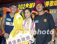 圖:歌星陳奕迅、陳冠希向新秀頒獎鼓勵 2002年08月15日 20:58 ![]() 歌星陳奕迅、陳冠希8月15日在香港出席「2002全球華人新秀歌唱大賽(香港區選拔賽)」記者會,八位新秀會上為18日晚進行大賽作最后熱身,以勁歌熱舞展示實力,結果1號參賽者羅寶欣奪得「最佳表現獎」,歌星陳奕迅、陳冠希并向她頒獎鼓勵。鄧慶樂 攝