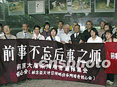 圖:日本民間團體悼念南京大屠殺遇難者 2002年08月16日 10:07 ![]() 八月十五日,日本“銘心會”、神戶——南京心連心會、長崎日中友好希望之翼三個日本民間團體組織的訪中團,在侵華日軍南京大屠殺遇難同胞紀念館內的“萬人坑”前舉行悼念儀式。楊艷 攝
