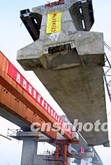 五日,隨著第2550根預應力混凝土軌道梁穩穩地架設在磁懸浮工程的蓋梁上,上海磁懸浮工程實現了軌道梁全線貫通。圖為第2550根軌道梁架設成功。作者:湯彥俊
