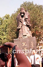 北京師范大學在百年校慶之際為老校長陳桓在校園內(nèi)立了一座雕像。圖為雕像的揭幕儀式