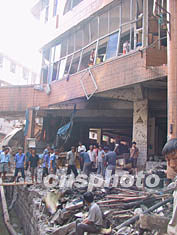 記者今天在現場了解到,發生爆炸的地方不僅僅只是農貿市場,還有與市場相鄰的長江橡膠廠等地區,甚至一家與農貿市場相隔一條大馬路的餐館亦未能幸免,這家餐館目前已面目全非,窗戶及墻上的玻璃已全部震碎。