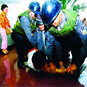 記者在現場看到,正對著歹徒的銀行工作人員邊四處搜集資金邊拖延時間,而旁邊的銀行工作人員趁歹徒不備,偷偷按了桌下緊急按鈕,不到兩分鐘就趕到的公安人員破門而入。據東城公安分局內保處處長蘇保柱介紹,組織“銀行反搶劫”演練,主要是為了增強銀行反搶能力和銀行職工自我保護及制服歹徒的應變能力。(王旭朱麗君)