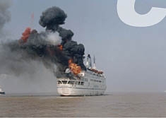 九時三十四分,“恐怖分子”驚慌從“東海一號”輪沿繩索滑下,乘快艇逃逸,兩分鐘后遇難船上便傳來兩聲巨響、火光沖天,“恐怖分子”用遙控器引爆了“東海一號”輪,剎那間,海面上濃煙滾滾--而此時,水上交通管制系統的雷達已經鎖定了“恐怖分子”逃逸的快艇。九時四十一分,三艘海警船在控制中心的引導下迅速追擊攔截、擒獲所有“恐怖分子”。