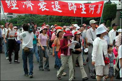 中新網9月28日電 臺灣教育史上第一次教師游行今天晚上七點結束。從臺灣各地趕來的教師一路高呼“教師要團結、尊嚴,勞動條件要協商”的口號,游行路程全長三公里,游行人數超出預期,發起單位臺灣教師會宣布有十萬人參加。