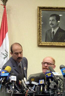 薩達姆的高級助手伊扎特-伊伯拉希姆在巴格達召開的新聞發布會上公布了上述官方統計結果,他表示伊拉克有資格參加全民公決的公民在周二當天幾乎全部參加了投票。
