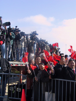 訪問期間,江澤民主席將與布什總統(tǒng)舉行會晤,就雙邊關(guān)系和其他共同關(guān)心的問題深入交換看法。美國和各國駐美新聞機構(gòu)均對江澤民此次訪問給予極大關(guān)注。圖為江澤民抵達芝加哥奧海爾國際機場時記者爭先采訪的現(xiàn)場。