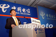 中國電信股份有限公司10月24日在香港舉行記者會,宣布25日起在香港招股計劃,紐約透過視像會議向全球發(fā)售一百六十八億股H股,預(yù)計集資額約為三十一億美元,為全亞洲今年最大公開招股項目。洪少葵 攝