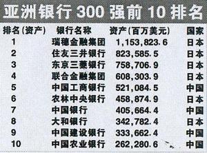 “雖然亞洲很多銀行家,每年是根據這個排名來確定這些銀行在亞洲地區的競爭地位的,但是我們想強調的是,受市場廣泛的兼并影響及信息來源的影響,單從資產總額來看亞洲銀行300強的排名,意義并不大!痹搱蟾娴淖珜懭恕ⅰ秮喼捭y行家》調研部經理周麗美在接受記者采訪時說。