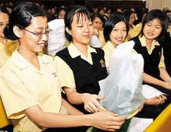 中新網10月30日電 臺北市“教育局長”李錫津與臺北市性病防治所長吳秀英,昨天在臺北的景美女中,用英文向1000名女學生示范如何戴安全套。