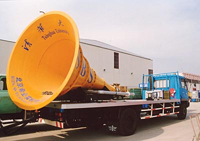 它是高技術(shù)的產(chǎn)品--氣動(dòng)喇叭。中國的這種氣動(dòng)喇叭是世界水平最高的。它能讓12公里外的聽眾清楚地聽到廣播,它巨大的功率使它播音時(shí)根本沒有人敢站在喇叭前。它是作為世界唯一的機(jī)場(chǎng)消霧喇叭的身份來參加航展的。據(jù)介紹它只要吼叫起來,甚至機(jī)場(chǎng)跑道上的霧都會(huì)消散。