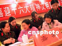 10月31日,濟(jì)南市槐蔭區(qū)部分先進(jìn)集體的優(yōu)秀青年代表匯聚在一起,舉行“喜迎十六大,精神文明建設(shè)交流會(huì)”。圖為會(huì)議結(jié)束后青年代表們?cè)诮徽劯惺堋瓮⒋?攝