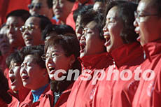 一日,北京市安定門街道的居民高歌《沒有共產黨,就沒有新中國》,喜迎八日即將召開的中共十六次代表大會。作者:史利