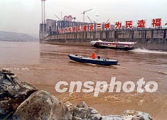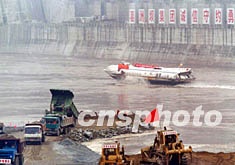 “金山4號”駛出導(dǎo)流明渠入口,頓時五彩氣球放飛起來,正在截流的施工車和“金山4號”都拉響了汽笛,聲震峽江兩岸,有著5年航運(yùn)史的三峽導(dǎo)流明渠從此永遠(yuǎn)封航。截流后,將在它上面崛起三峽工程的右岸大壩。