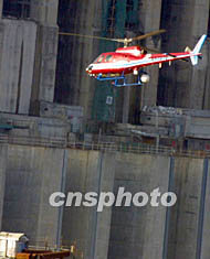 中央電視臺三日用直升飛機拍攝長江三峽大壩導流明渠截流施工現場。隨著合龍日期的臨近,目前新聞單位在這一區域已形成了水陸空立體報道網。作者:宋吉河