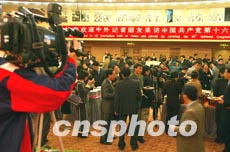 中國共產(chǎn)黨第十六次全國代表大會新聞中心六日晚在北京梅地亞中心舉行酒會,歡迎前來采訪的中外記者。作者:毛建軍
