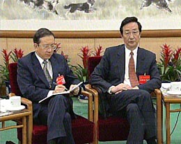 江澤民李鵬李瑞環參加討論與代表談建設小康社會