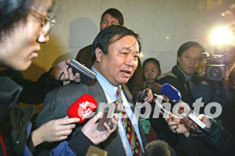 出席中國共產黨第十六次全國代表大會的江蘇民營企業家沈文榮十日在分組會上被媒體記者包圍采訪。作者:毛建軍