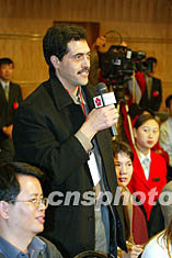 在梅地亞賓館中共十六大新聞中心,此前舉行過三場(chǎng)記者招待會(huì),有關(guān)人士就經(jīng)濟(jì)發(fā)展、社會(huì)保障、西部開發(fā)等問題接受了記者的采訪。今天是最后一場(chǎng),又時(shí)值中國(guó)加入世界貿(mào)易組織一周年,記者采訪高潮迭起。(完)
