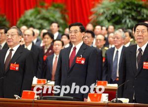 胡錦濤在中共十六大閉幕會上