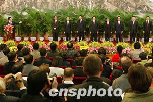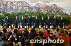 十六大特寫:新一屆中共中央政治局常委首次亮相