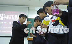 北京第二中學十一月在“青春教育”選修課中開設了《艾滋病毒與艾滋病》課程。師生們采取互動式教學法,以活潑的游戲形式,形象直觀地使學生們了解艾滋病的傳染渠道及防范的方法。據悉:北京市教育主管部門已要求各中學開設“青春教育”課程。作者:史利