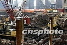 二十日,美國紐約世貿中心地產承租人西爾維斯坦向新聞界公布了世貿中心七號樓的重建藍圖。一座高二百二十八米的辦公大樓將在三年后在原七號樓的地基上拔地而起。圖為原七號樓的施工地基。作者:中新社