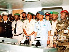 國(guó)防大學(xué)外訓(xùn)系高級(jí)指揮班三十四名外籍軍官二十一日訪問廣州艦艇學(xué)院。圖為外籍軍官在該院副院長(zhǎng)李寧將軍陪同下參觀艦艇教學(xué)模擬訓(xùn)練中心。作者:庹新國(guó)