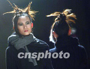 張繼成“頹廢的生靈”主題時裝發布會二十五日晚在中國國際時裝周上舉行。其設計靈感來自于本世紀初的恐怖事件,作品借助白色、黑色、米色等高雅顏色,表現人們的世紀矛盾心態。作者:毛建軍