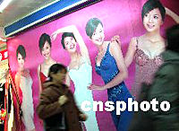 許多生產內衣的商家,借北方寒冬進行反季節銷售,誘人的瘦身內衣美女廣告格外奪目。王麗南 攝