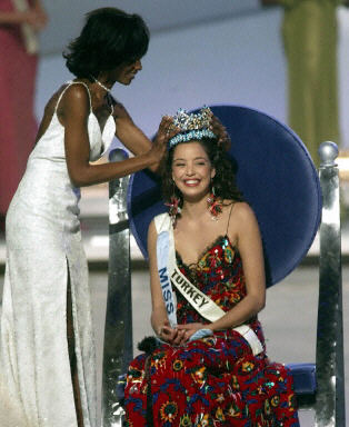 中新網12月8日電 2002年度“世界小姐”選美大賽7日晚在倫敦落下帷幕,21歲的土耳其小姐阿茲拉·阿金榮贗“世界小姐”桂冠,并獲得10萬英鎊(約合15.5萬美元)的獎金。