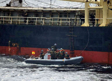 12月9日西班牙海軍在阿拉伯海上扣留了一艘由朝鮮駛往也門的貨船,12月11日西班牙國防部稱,So San號貨船經檢查載有15枚帶高爆彈頭的“飛毛腿”導彈及其它軍事物資,因此西班牙海軍將其扣留并移交美國海軍。