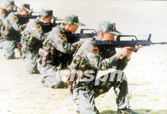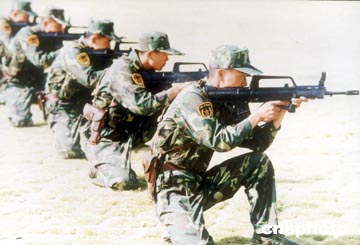 中國人民解放軍駐澳門部隊(duì)的官兵在廣東某基地使用國產(chǎn)新式?jīng)_鋒槍大練兵。作者:中新社