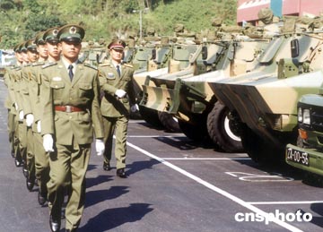 中國人民解放軍駐澳門部隊(duì)的裝甲機(jī)動(dòng)分隊(duì)軍容嚴(yán)整。作者:中新社