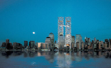 中新社紐約十二月十八日電(記者 趙海燕)與幾個(gè)月前公布的第一輪世貿(mào)重建方案正好相反,今天在紐約公布的第二輪共九個(gè)重建方案希望在廢墟上重建摩天大樓,不僅要比已經(jīng)倒塌的雙塔樓高,而且要成為世界上最高的樓。