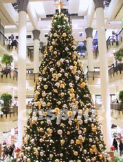 圣誕平安夜,美國各地的節日氣氛十分濃厚。圖為首都華盛頓一個購物中心將高達四層樓的圣誕樹立在大堂中央,吸引來往顧客。作者:余東暉