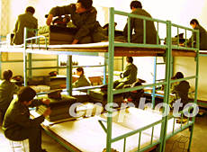 北京郊區的解放軍某新兵連女兵二十六日在緊張地整理內務,以做好元旦前突擊檢查的準備工作。解放軍指揮機關每逢年節都要對下屬部隊進行檢查,以確保部隊秩序井然。作者:宋吉河
