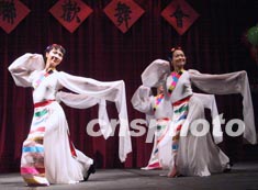 渥太華中國大專校友會等八家華人社團二十八日晚舉行慶祝新年聯歡會。圖為當地華人自編自演的西藏舞蹈《凈土》。作者:蒲力