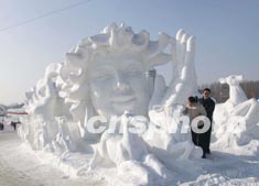 新年長春凈月潭冰雪旅游節的冰雪游樂園共設立三十六個景區,雪雕作品《春的使者》好似白雪仙子。作者:韓丹